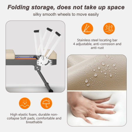 • High-Density Sponge Cushion, Durable & Comfortable:The high-density sponge cushion resists deformation, while eco-silicone leather is easy to clean and scratch-resistant. Paired with ultra-smooth glide rails, it ensures a comfortable workout for all poses.
